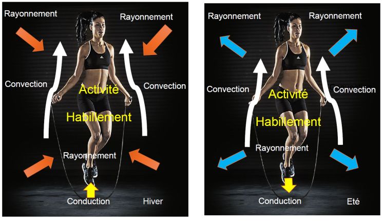 Notre corps doit compenser en permanence les échanges thermiques avec l’ambiance et quelle que soit notre activité et notre habillement.