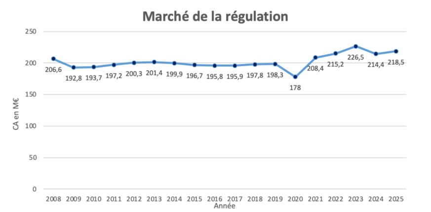 En 2025, le marché de la régulation a ainsi progressé de 1,9 % pour s'élever à 218,5 millions d'euros.