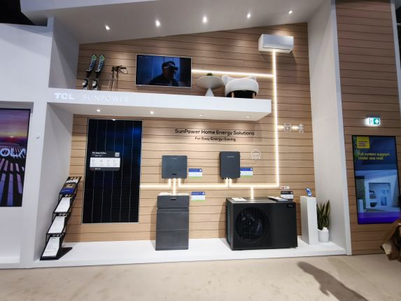 Enfin, TCL dévoilait sa marque SunPower sous laquelle sont proposés à la fois des panneaux photovoltaïques, du stockage d’électricité, un onduleur hybride de 5 à 13 kW en triphasé qui convertit le courant continu issu des panneaux PV, charge et décharge le stockage d’électricité, ainsi qu'un automate de pilotage et une gamme de pompes à chaleur air/eau au R290.